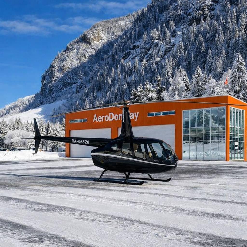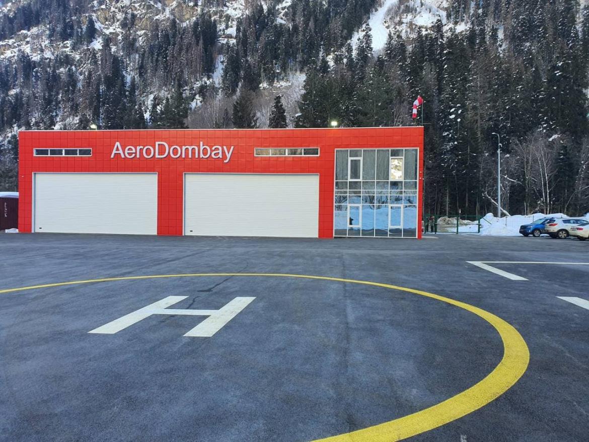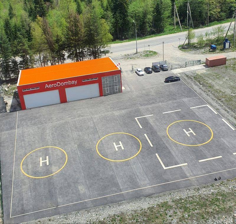 Современная посадочная площадка «Домбай», расположенная на горнолыжном курорте Домбай, в одном километре от подъемников по адресу ул. Вертолетная 7.